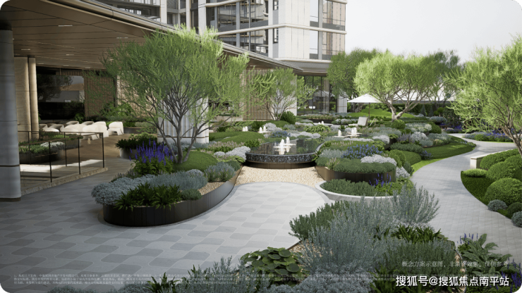 花园&会所:南低北高台地式园林,依托抬升6米的浮岛底盘,打造自然有序&动静相宜的森系花园。以迎宾与浮岛庭院的双丰盛空间,在垂直山林溪谷间布置有露天泳池,并设有环水吧台、躺椅、沙发,及满足健身、茶歇、洽谈、商业、阅读、茶艺、休憩、逸趣等全社交场景会所。