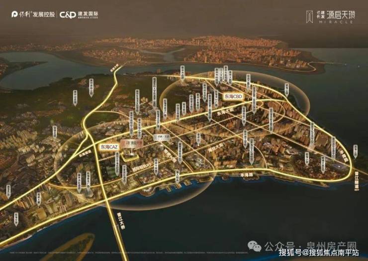 项目落位泉州超高规格、高标准、高投入建设的湾区头部板块—— 东海CAZ, 总面积约4515亩总投超1000亿,同频世界CAZ超前规划理念, 将打造成为泉州湾区的全新城市封面。