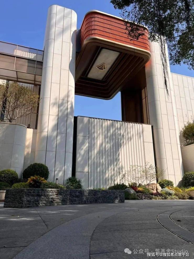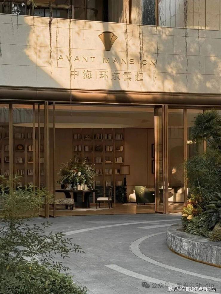 中海环东雲起的大门,高达10米以上,选用顶级月光米黄石材打造,地面铺装同样为定制设计,并配备专属IP化灯具。白天尽显恢弘气势,夜晚亮灯后宛如城市小地标——在环东区域独树一帜,放眼全厦门亦属罕见。这不仅在于其“大”,更在于“精工细作”。大门区域铺设约2200㎡的月光米黄大理石,每块石材对缝精准无隙,就连拐角处也采用弧形工艺处理,彰显极致匠心。