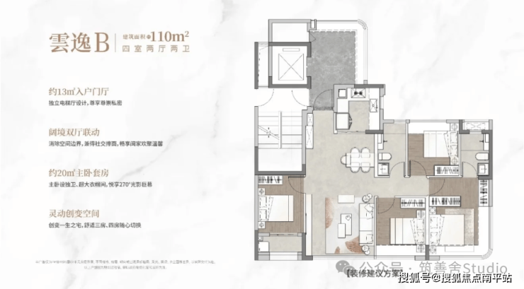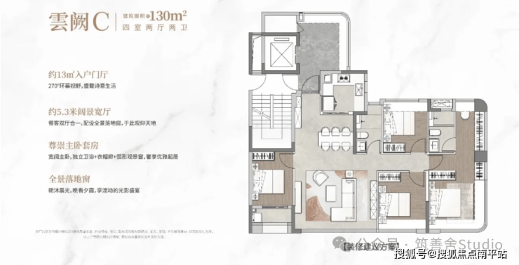 中海环东雲起项目容积率仅 2.1,规划了七栋楼,是 15 - 17 层的小高层,项目的户型面积段,覆盖了95-143㎡。户型设计上做到了全独梯独户,享独立入户明厅,综合使用率超100%,真正的负公摊产品。