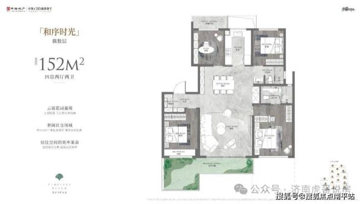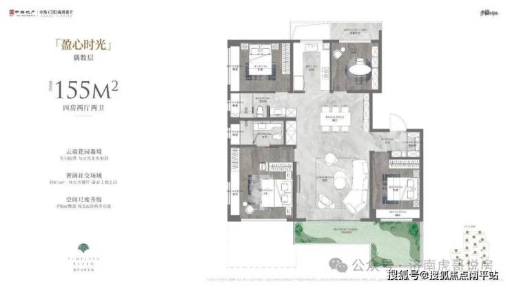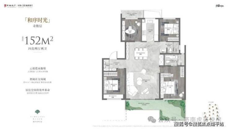 5#、8#、12#、15#、16#、17#、18#为小高层,152/155平,四室两厅两卫,152平:2.3-2.85万 ,350-430万,得房率在94%。155平:2.4-2.9万,370-450万,得房率在97%到99%。有点抓马啊,做了个四叶草的户型,有点像天空之境148的户型,虽然是小高层了,总价低,但是户型接受度差,流速不会太快。两个户型区别不大,主要是边户没有缺角,次卧和次卫更大了,其他没啥区别。☎️☎️售楼处电话400-159-8559转接7788【免费预约通道】