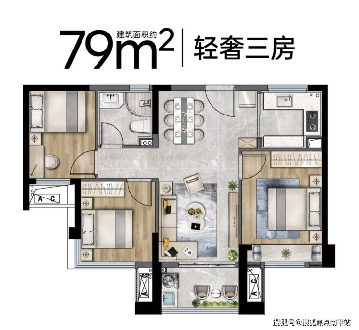 79平3房2厅1卫户型优势