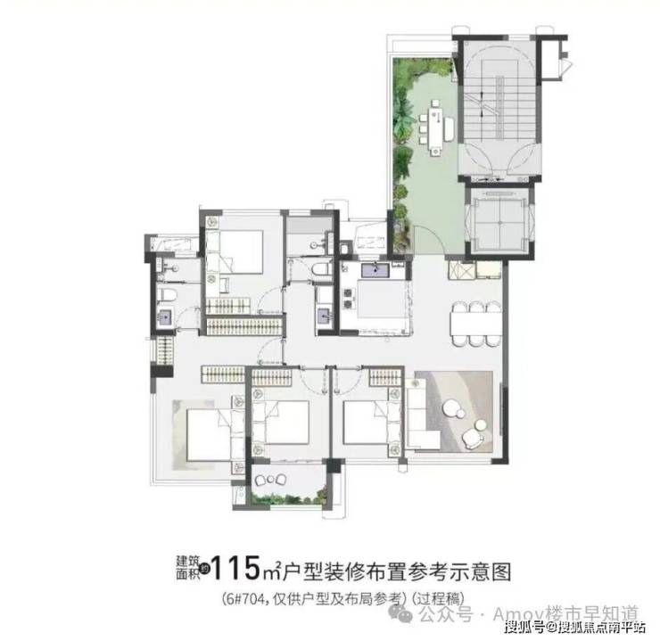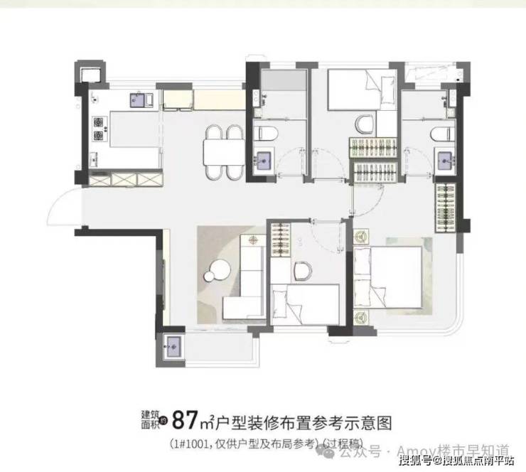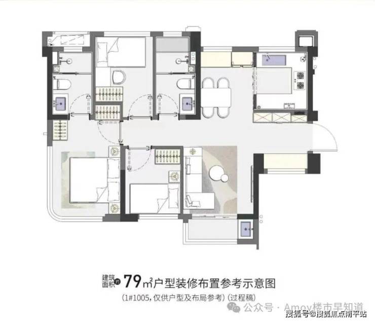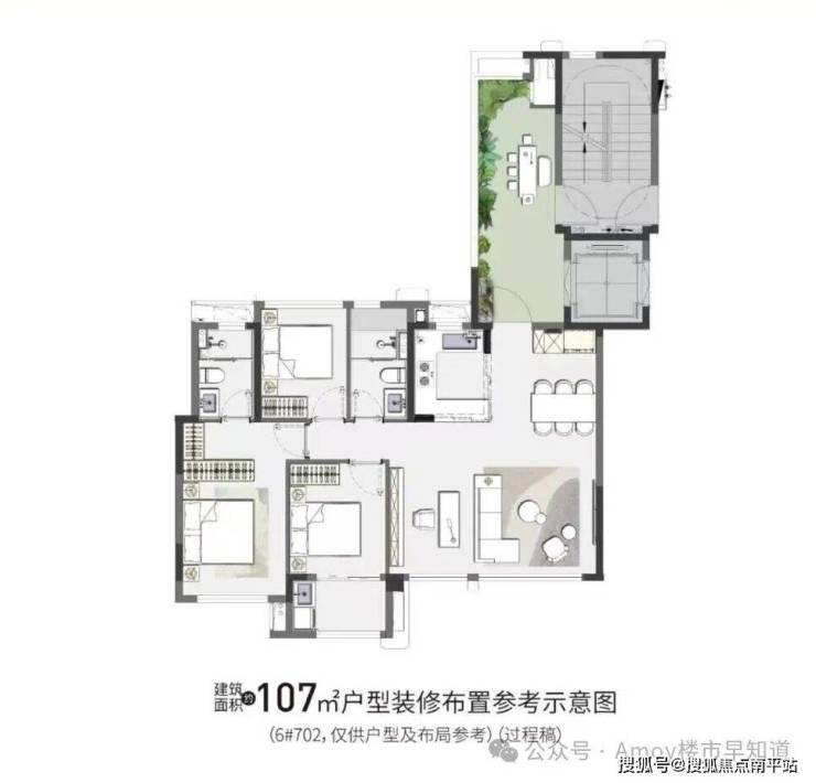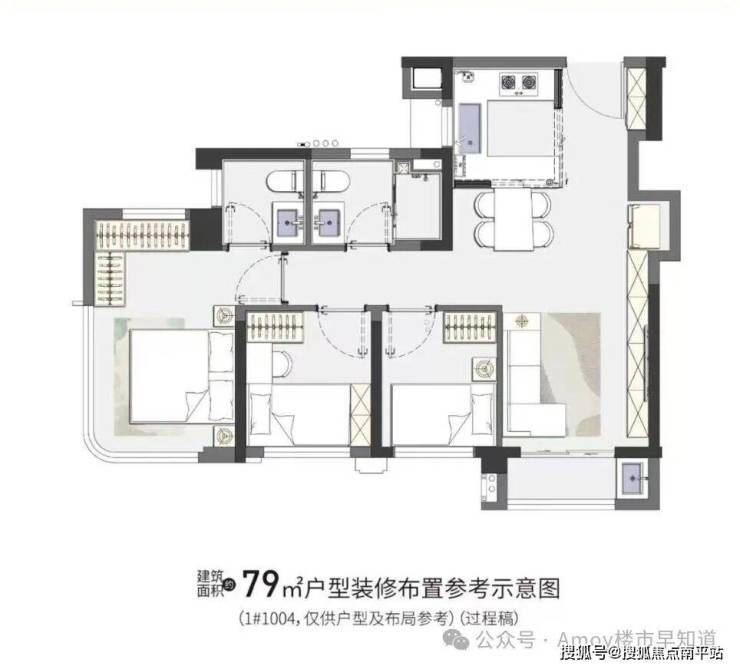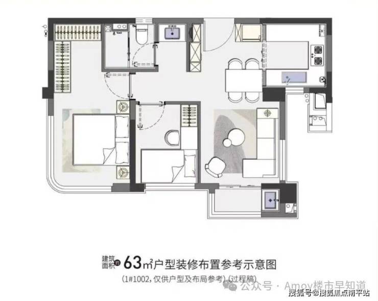 户型建面:63㎡2房、79-87㎡3房两卫、107㎡3-4房两卫带入户花园、115㎡4房两卫带入户花园。
