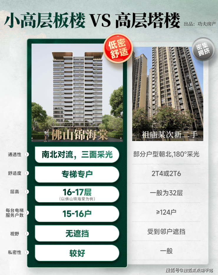 佛山锦海棠打破常规限制,采用罕见的 板楼小高层设计,约138㎡起步即享专梯专户,让改善客群也能拥有豪宅般的居住体验。