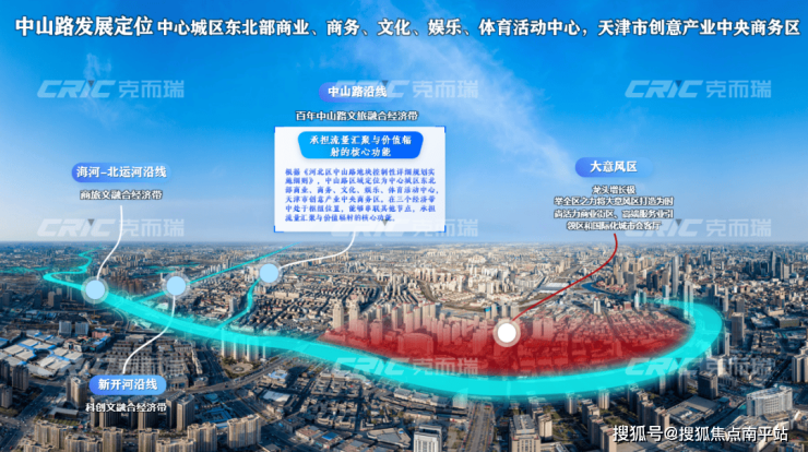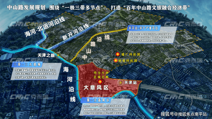 其中,中山路沿线处于枢纽位置,能够串联其他节点。根据规划,中山路区域将成为中心城区东北部商业、商务、文化、娱乐、体育活动中心以及天津市创意产业中央商务区,发展空间广阔,为重点项目成长提供有力支撑。