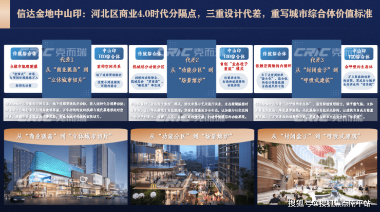 相较于传统商业形态,项目实现了从1.0传统百货、2.0购物中心、3.0体验式商业中心到4.0立体城市共同体的跨越。