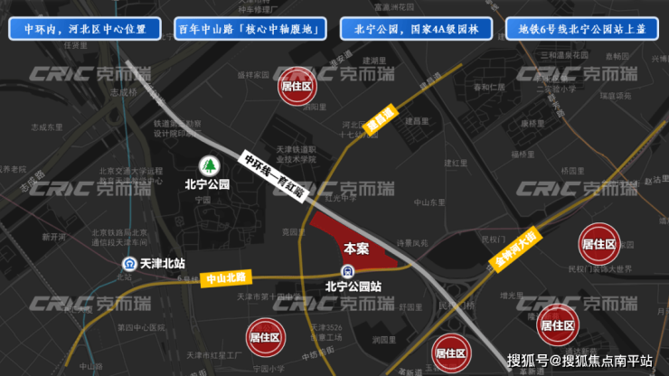 项目位于中环内河北区中心位置,地处百年中山路 “核心中轴腹地”,紧邻国家 4A 级园林北宁公园,周边居住区密集,生活氛围浓厚。