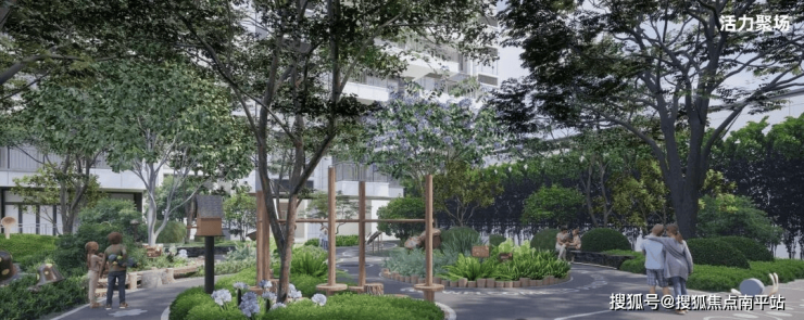组团架空层针对老年、青年、幼年三大年龄阶段,分别规划设计五大适龄主题,打造温暖、阳光、活力十足的社区公共空间,让每一位业主,都能在这找到自己的主场。