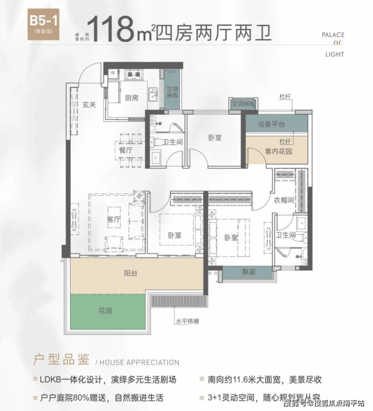 A区组团规划118㎡-143㎡三大四房户型,户型客餐厅LDKB一体化设计,演绎多元生活剧场,动静分区,坐拥超长南向面宽。不仅如此,全部户型都打造有私家花园,装下你的诗和远方。
