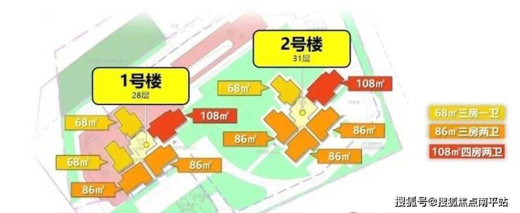 项目将推出建面69-86-108平的三四房,其它86平三房两卫货量最低,占了5条梯腿,108平货量最少,只有60套左右。