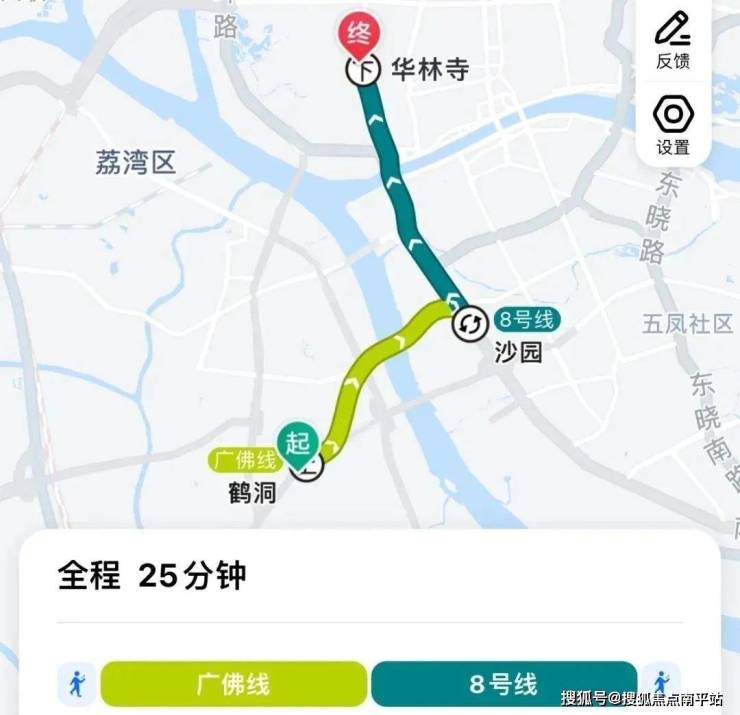 地铁去往荔湾华林国际:出小区步行至广佛线鹤洞站,坐2个站到沙园换乘8号线,再到华林寺,全程6个站,耗时25分钟左右。