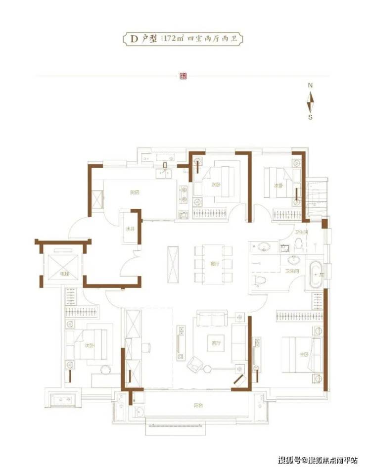 3#楼为9层毛坯洋房,两梯四户,一梯两户,公摊17.5%,户型面积为172平四室。