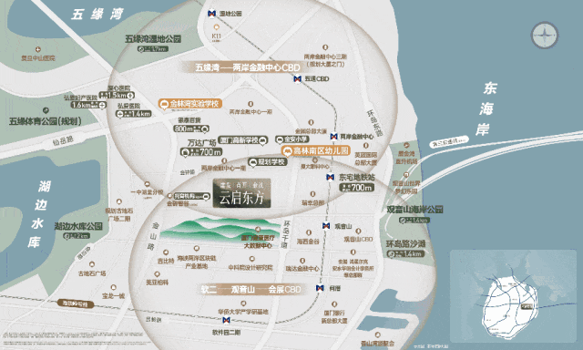项目位于两岸金融中心片区莲山头板块,直径1公里内配套:湖里万达广场、银泰百货、厦门高新学校、两金启动区一期、厦大附属眼科中心,1.5公里内,五缘湾的弘爱医院、K11商场、软件园二期,学校先就读金林湾实验学校,项目左侧规划了一个“金林九年制”学校。🚩厦门【云启东方】售楼处电话☎️400-159-8559转接6688【营销中心VTP通道】