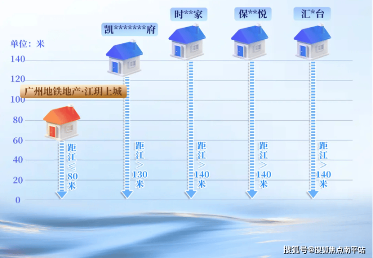 它距离珠江航道,最近只有约80米。现行政策要求退江100-200米,项目约80米一线临江近乎绝版。