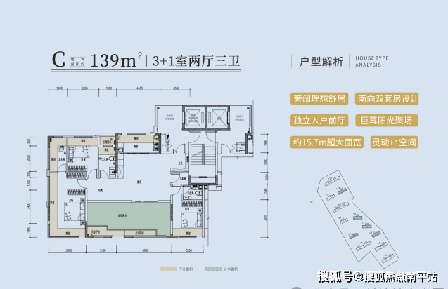 户型面积:117㎡三房|128-139㎡