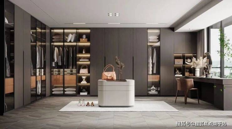主卧预留了Mini bar空间,步入式衣帽间尺度升级,男女主人衣物可分区容纳;卫浴空间全部独立分区,配备独立的梳妆台和极致收纳的镜柜。