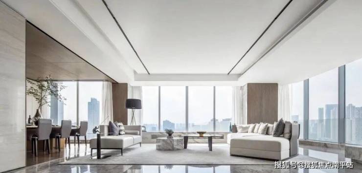 建面约305㎡户型带来了更多震撼,仅客厅面积即达约64㎡,除约10.4米长跑道阳台外,全屋采用大面积玻璃,坐拥270°IMAX环幕视野。
