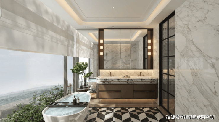 四分离的设计,让沐浴、如厕、洗漱、妆奁互不干扰。临窗而设的独立浴缸是空间的焦点,将佛山新城城市极境收揽入怀。