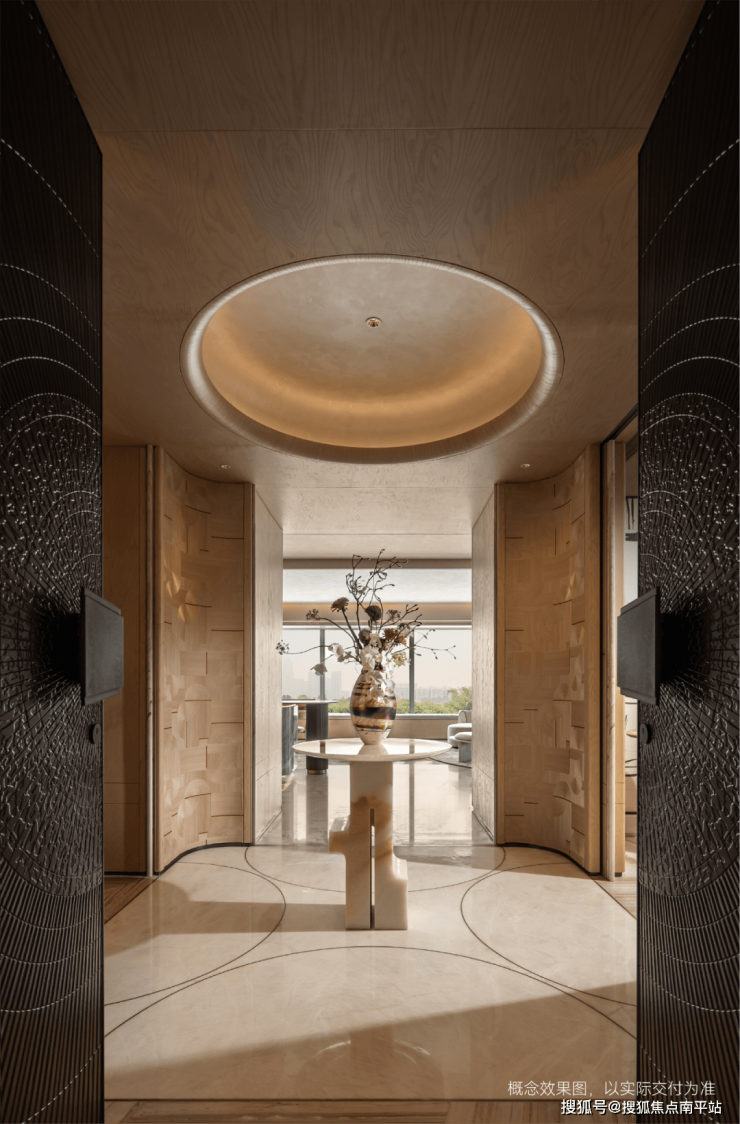 云幕APEX498以“十字圆厅”入户,灵感源自文艺复兴建筑大师帕拉迪奥的圆厅别墅。