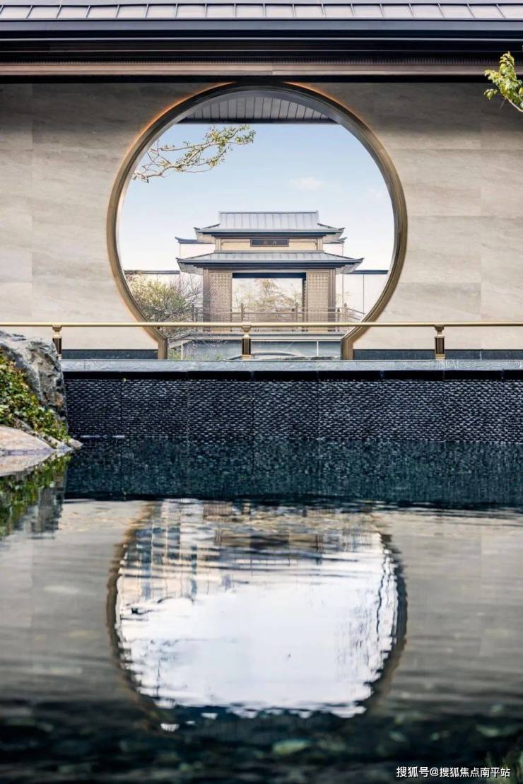 写仿西湖十景,取意郭庄形制,引湖入园、循序渐进,复现九溪烟树况味;景观中轴、风雨连廊、花园景致等将建筑与园林相融一起,依循自然缓坡地势,营造意韵悠扬的禅境园林,呈现小中见大、园中有园、景中有景、曲径通幽之境,将西湖的精致山水写仿入园,于方寸之间纳藏万千气象。