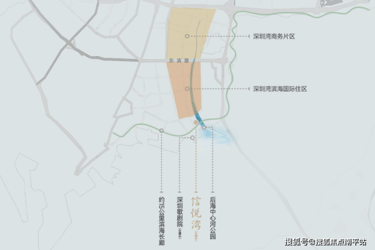 再把地图放大,深圳湾以东滨路为界,北区主要为商务功能,南区为滨海国际住区,居住氛围更加纯粹,是深圳湾豪宅的主要聚集区。