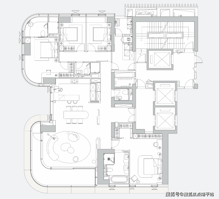 说到此处,网上有一些关于项目得房率的讨论,淘哥认为,中信城开信悦湾每一户都是双梯入户、主服分流,隐私与尊贵感拉满,对于这种“一层一户”的顶豪,整层楼都是自己家,电梯厅完全是专属空间,得房率其实没什么好纠结的。
