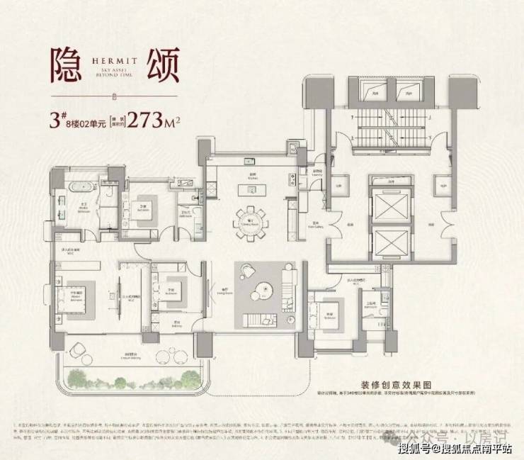 •天际平墅:575㎡户型为5+1居室,配备挑高6米客厅、独立电梯厅与错层露台,打造“垂直森林”式空中院墅。