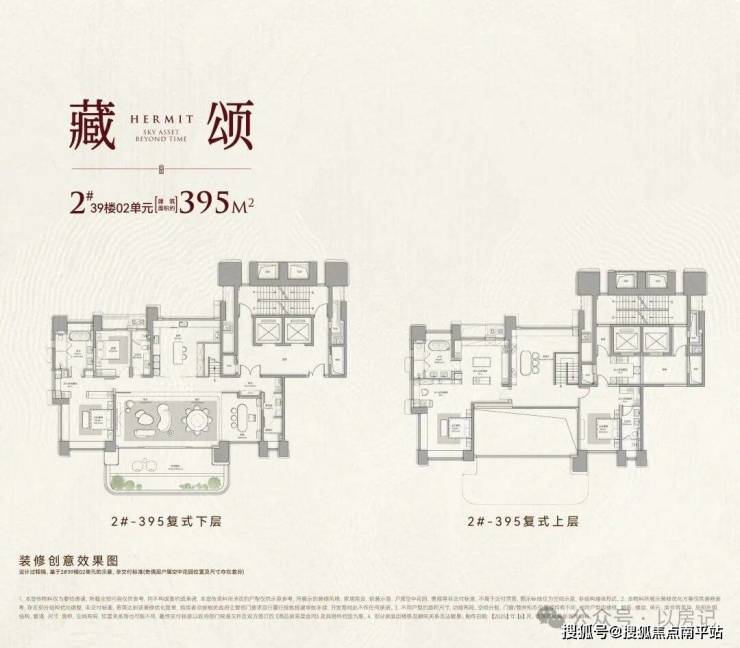 •主打建面约198-575㎡大平层及复式产品,均为第四代生态住宅,户户配置空中花园或露台,部分户型赠送6.8%-20%的露台面积;