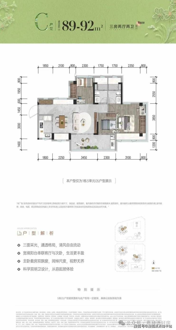 首次推首 北地块1栋3单元,约80-92㎡ 3房,共195套,新规使用率高达96%-105%!