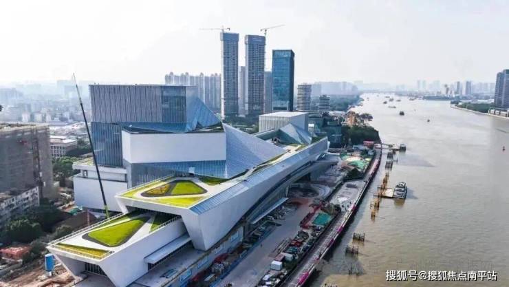 约800米极宽江面,更可瞰约2公里滨江绿地公园带和CBD繁华天际线,以珠江之光,点亮一座城市的千年荣光,广东省重点文化工程“三馆合一”项目全面封顶,目标打造成为“广东艺术的新客厅”。