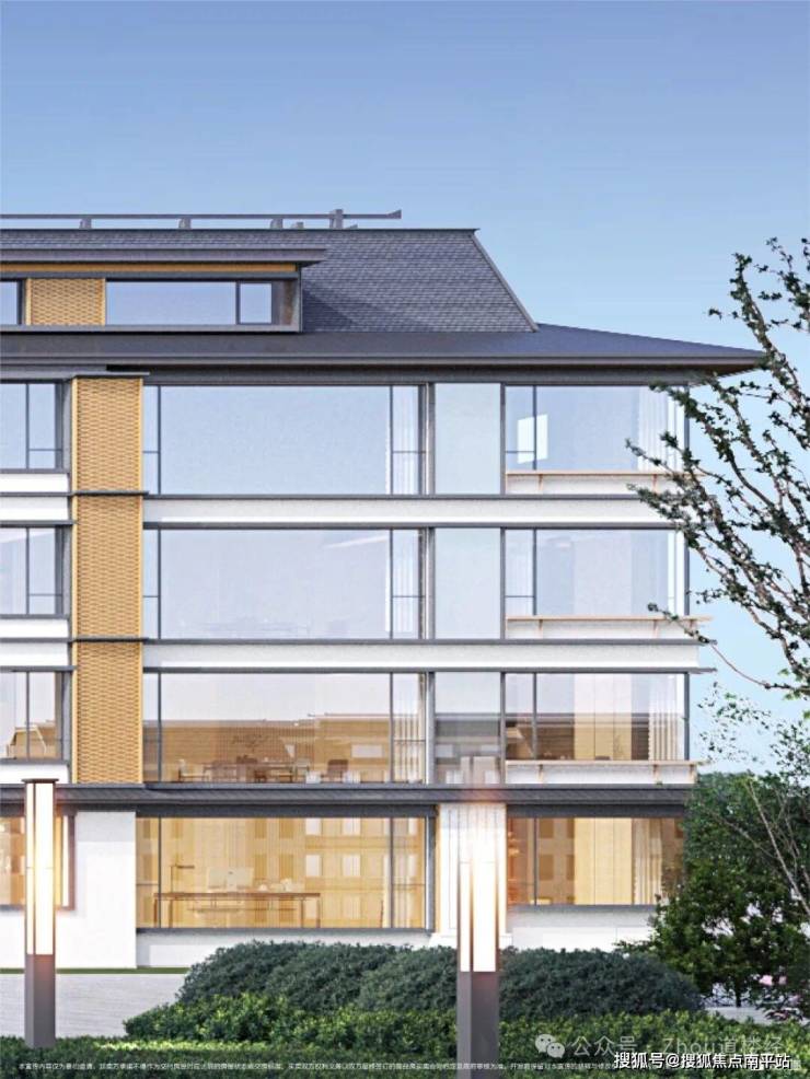高颜值立面:光幕立面+经典三段式设计+仿宣纸背漆玻璃,雕琢光影肌理