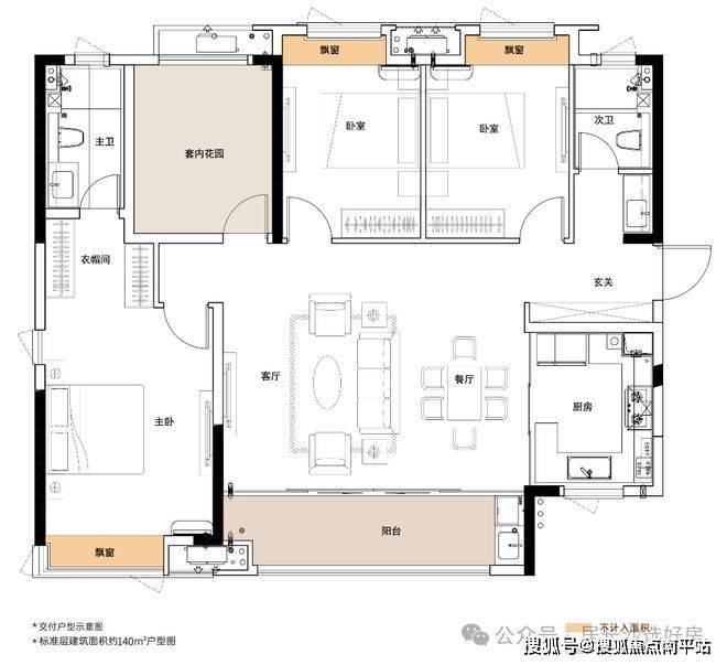 【现在三房未来四房】约128㎡奢阔大三房,户型方正,南向三开间、大阳台、多飘窗设计,约78%非承重墙占比,减少过道、拐角等冗余空间,增强空间拓展性,为不同家庭营造更为丰富的生活体验。