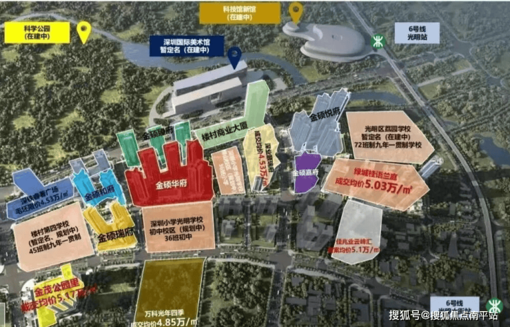 金硕臻府,由满京华集团开发,位于光明区光明中心区光辉大道与狮山三街交汇处,项目所在区域是光明规划最宜居,居住小区板块最大的片区,北侧靠近科学公园,东侧及南侧是深圳小学光明学校狮山校区及初中校区,距离最近的6号地铁线“光明站”约800米。