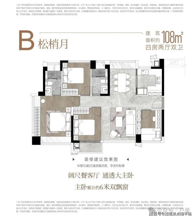 - 四开间朝南,主卧6米双飘窗,动静分区明确。