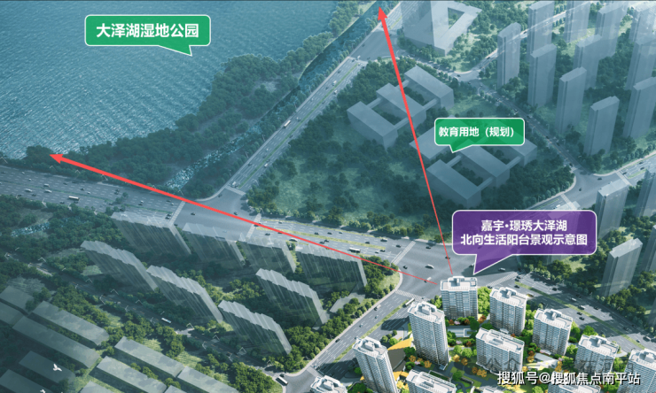 更绝的是,项目距离大泽湖湿地公园直线距离仅约500米,房子北面刚好是教育用地,不会遮挡视野。