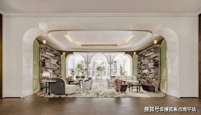 此外,本项目汲取鼓浪屿的建筑特色,如连廊、圆拱与彩色玻璃元素,与全球精选的奢石材料、蕴含中式文化精髓的非物质文化遗产工艺相融合,营造出独特的艺术氛围。