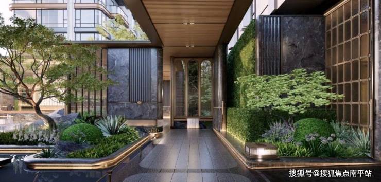 该项目园林设计及社区场景以 “ 海派雅奢 ” 为基调,融汇东西,引百年海派剧院、老洋房、名仕酒会等场景,以中式园林的步移景异、小中见大的手法将其入园造境,形成一轴五景空间场景。