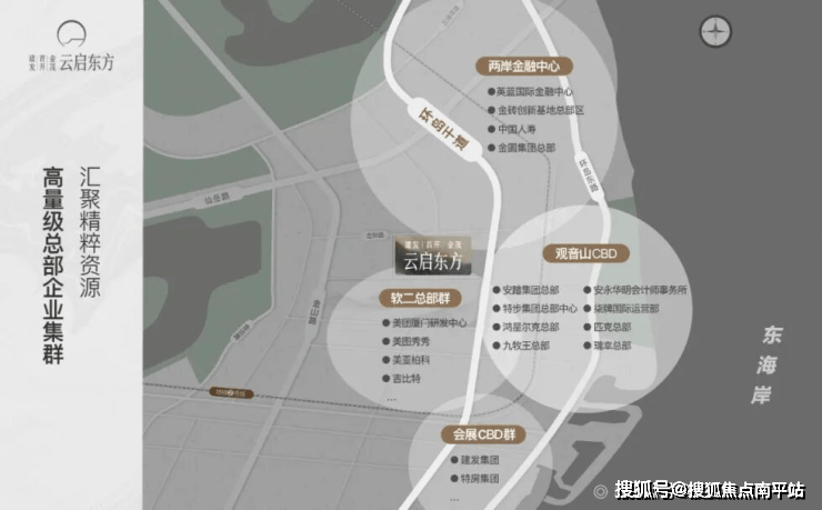 如果用产业发展的眼光看厦门,更会发现,这是中国进入【金融+科技】发展新时代后,厦门的产业命脉所在——五缘湾商务区、两岸金融中心、金砖智谷、观音山总部经济、软件园、会展CBD六大CBD,构成东部岸线最大规模的CBD集群,历经十年的基础设施建设和招商引资,银行、证券、保险、监管机构、金牌国企、优质民企、跨国公司等先后入驻, 已形成高量级总部集聚效应,形成一条以金融为龙头、软件信息为引擎、会展旅游为特色的现代服务业产业走廊!