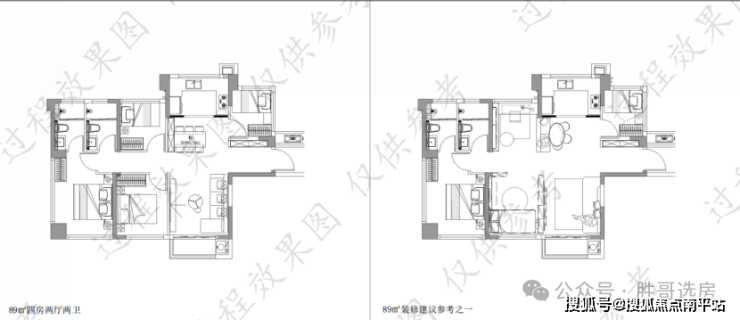 高层79m²户型三房两厅两卫,综合使用率约85.8 %,空间及功能堪比市面 100㎡以上二手房,相较新房有10㎡左右的降维打击,相当于89㎡左右新房。