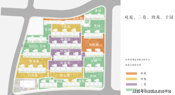 构建“双庭、三巷、四苑、十园”格局,环形景观道如绸带串起景致。
