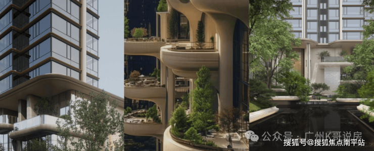 还有立体式垂直园林、带瀑布造型的悬浮泳池。