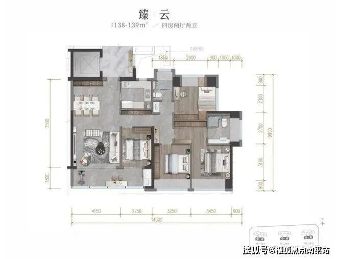 【产品户型】:建面约202-204㎡四房两厅三卫