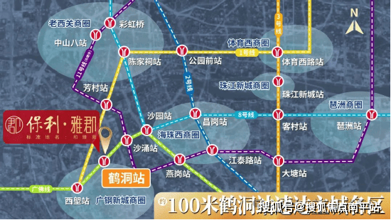 【鹤洞站】出发一个站到【沙涌站】,即可换成地铁11号线(预计2024年底开通)这是广州中心区大环线,可以通达环市东、珠江新城、天河北、琶洲等多个CBD。