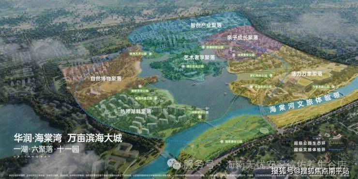 以“治理—开发—生活”为核心理念的文商旅片区统筹开发模式,于约5500亩海棠河生态公园之上,打造“一湖·六聚落·十一园”的万亩滨海大城,助力政府抬升海棠湾发展能级;携三亚首座万象城(建设中)、Hello Kitty主题度假酒店(建设中)、奢侈品设计学院研展中心(规划中)等高奢配套,与国家共同构建全球海湾新封面。