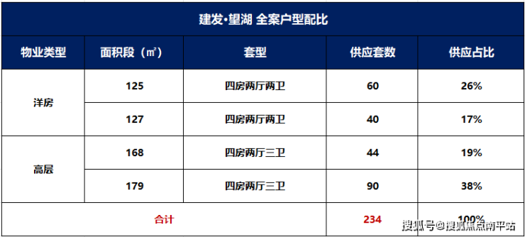 建发望湖项目共规划6栋住宅楼,其中3栋高层、3栋洋房,高层住宅134套,洋房住宅100套,合计234套。