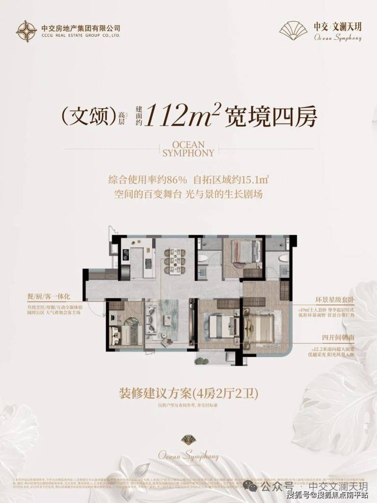 中交文澜天玥项目,由国资委直属央企、《财富》世界500强第61位的全球基建巨头——中交集团旗下中交房地产集团开发。项目雄踞集美桥头堡优越地段,坐拥稀缺一线海景资源,进岛首站交通便利,生活配套齐全。产品面积段丰富,涵盖建面约89-112㎡的全能四房及125-206㎡的奢阔四代宅,满足不同家庭的品质生活想象。