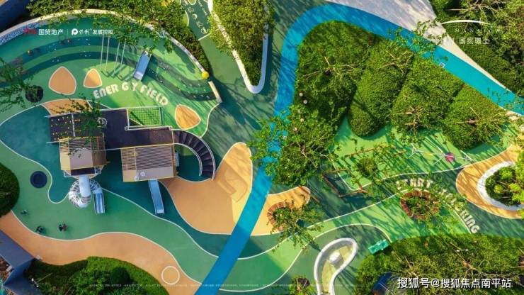 孩子们在约1000㎡亲子乐园中玩得不亦乐乎,这里有攀爬网、树屋滑梯、溪涧水景与雾喷装置等无动力设施,适配各年龄阶段的游戏场景。