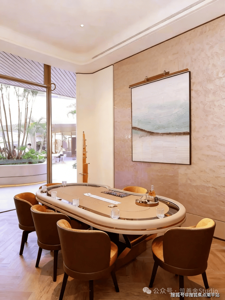 大华·山海和鸣的3200㎡双层会所,将理想中的松弛生活完美呈现,集健身房、瑜伽室、棋牌室、私宴厅、业主食堂等于一体,为全龄段业主打造身心疗愈与社交交融的复合空间。 泳池区藏山纳海,傍晚灯光映照水面,棕榈树影摇曳生姿,池边晚风轻拂,三亚的浪漫尽收眼底; 瑜伽室阳光满溢,落地窗外绿意盎然,蒲团之上冥想静心,呼吸与自然同频,治愈时刻悄然降临; 健身区绿意环绕,专业器械伴自然视野,运动化作享受,每一滴汗水都为生活充电; 高定私宴厅与业主餐厅,山海为幕的私宴或邻里小酌,温情与仪式感在一餐一饭中满溢; 棋牌室茶香四溢,知己围坐笑语欢声,日子慢悠悠,松弛感自然流淌。 社交、运动、雅集在此交融,山海触手可及,无需远行。