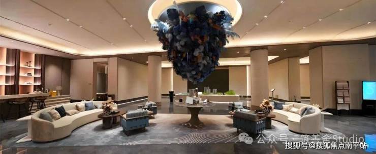 大堂,约6.3米的恢弘挑高、约250㎡的磅礴尺度,瞬间彰显空间的非凡张力。大堂背景墙上,那幅由顶级画师手工绘制的约5.5米高光纤海浪艺术壁画,仿佛将海的律动与呼吸引入室内,带来沉浸式的海洋体验。墙面精选与宝格丽酒店同款的保加利亚进口维纳多石材,脚下则铺陈带有星闪奢石的佩纳深蓝石材,每一处细节都彰显着高奢质感与艺术气息,令人目不暇接。