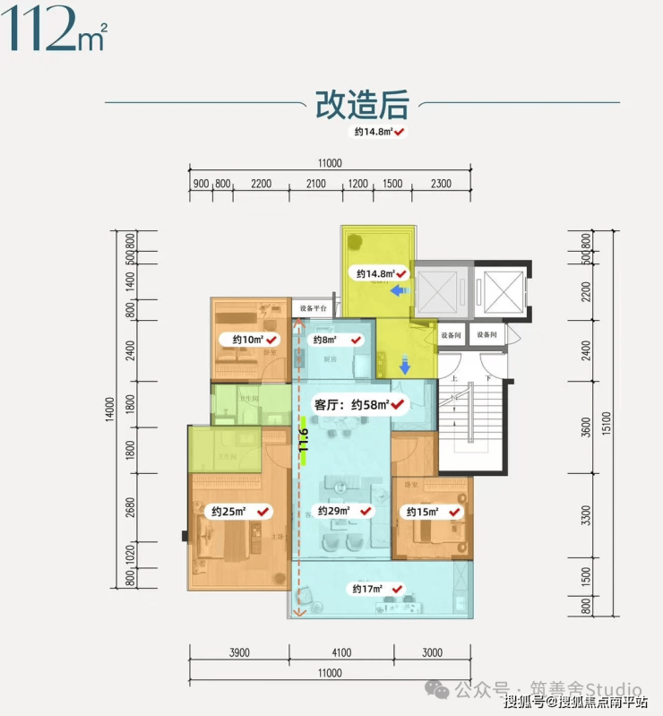 建筑面积约112㎡户型,拥有约15㎡全明电梯厅,归家即享尊崇礼遇,仪式感倍增。U型厨房、约28㎡客餐厅与约7.1米景观阳台无缝衔接,打造家庭共享空间,动静相宜,生活意趣盎然。约24.6㎡主卧奢配转角落地窗,白天山海入怀,夜晚璀璨入梦。